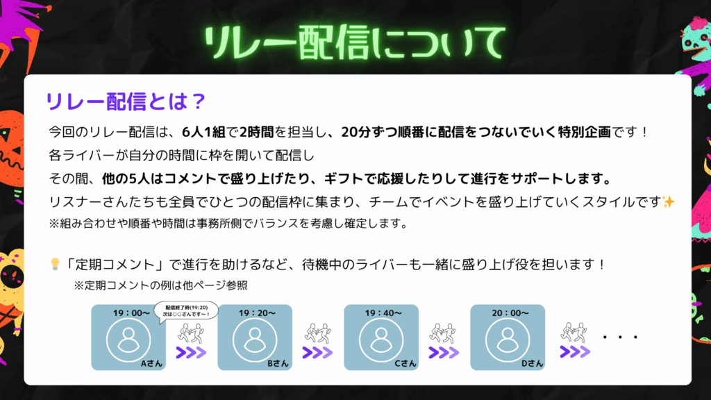 リレー配信に登場するライバーは全員仮装して登場!